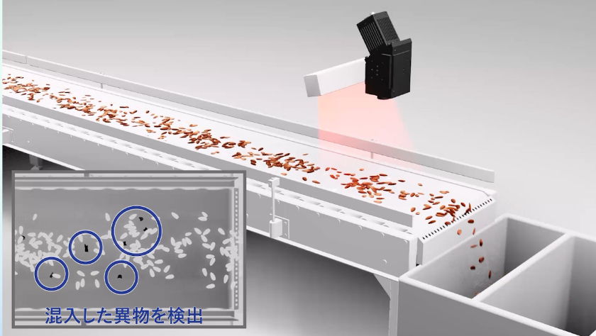 可視光では捉えにくい生産ライン上の異物検査を高精度に行い異物を正確に検出します。