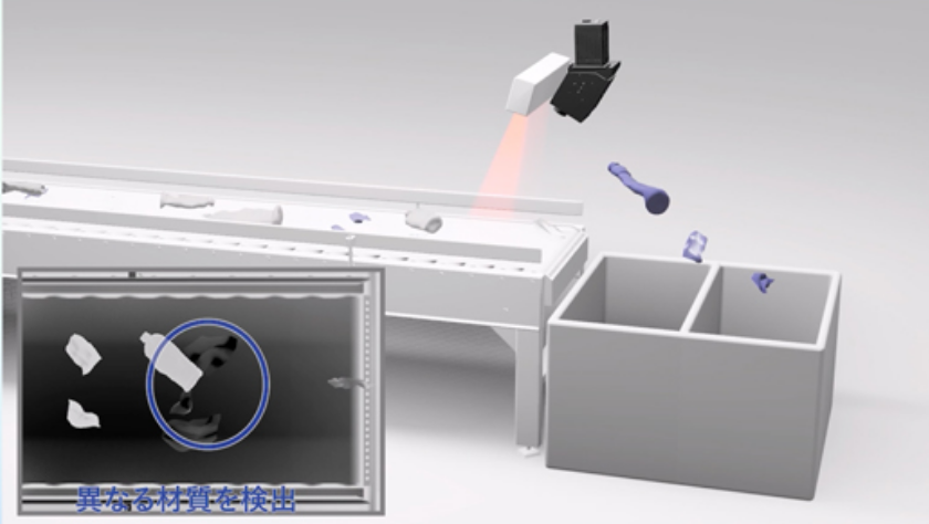 素材一つ一つの異なる光の吸収反射特性を利用してここを識別子、異なる素材を効率的に分類します。使用(導入)分野例